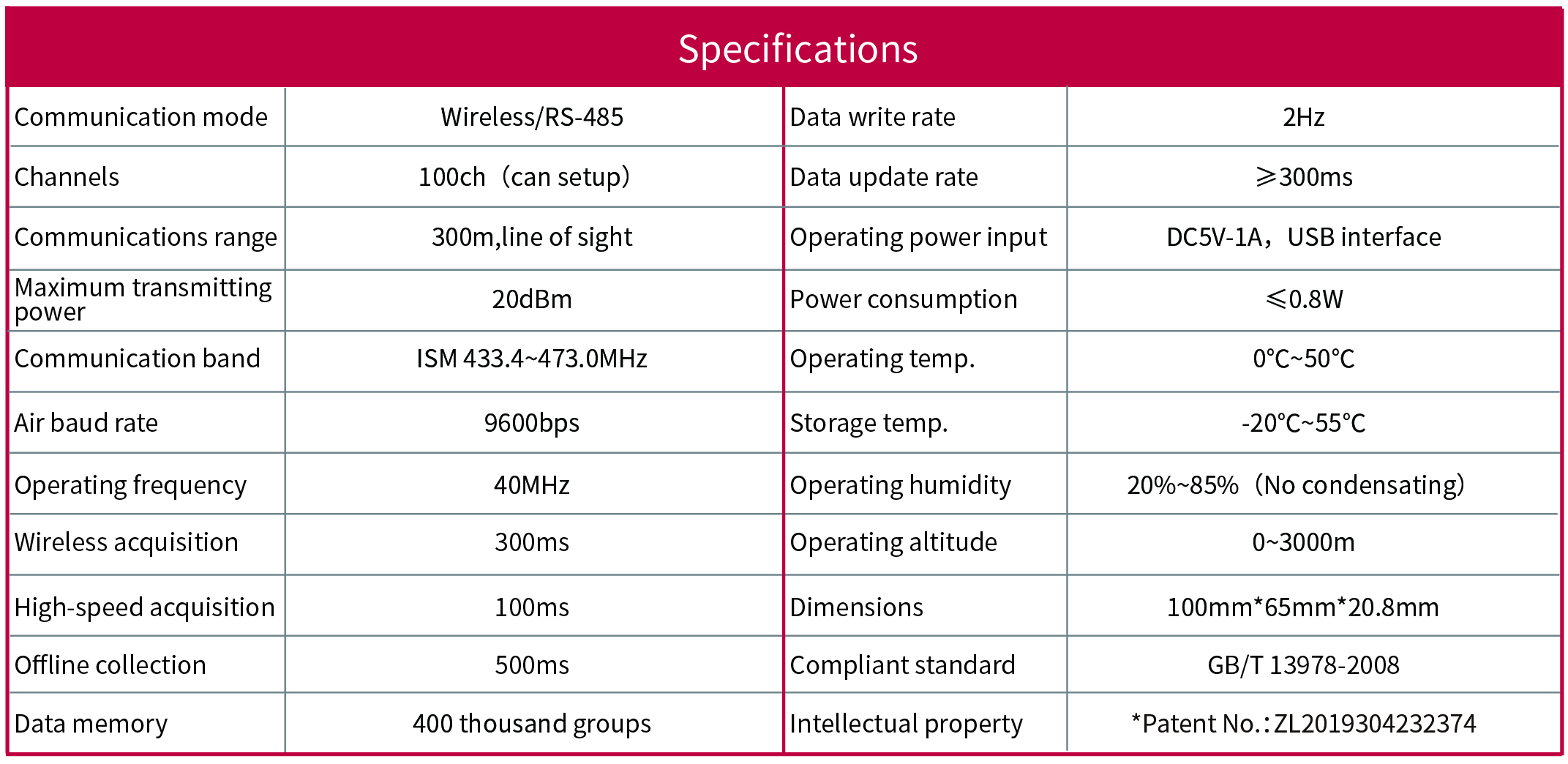 Data acquisition Long communication distance and sensitive reception